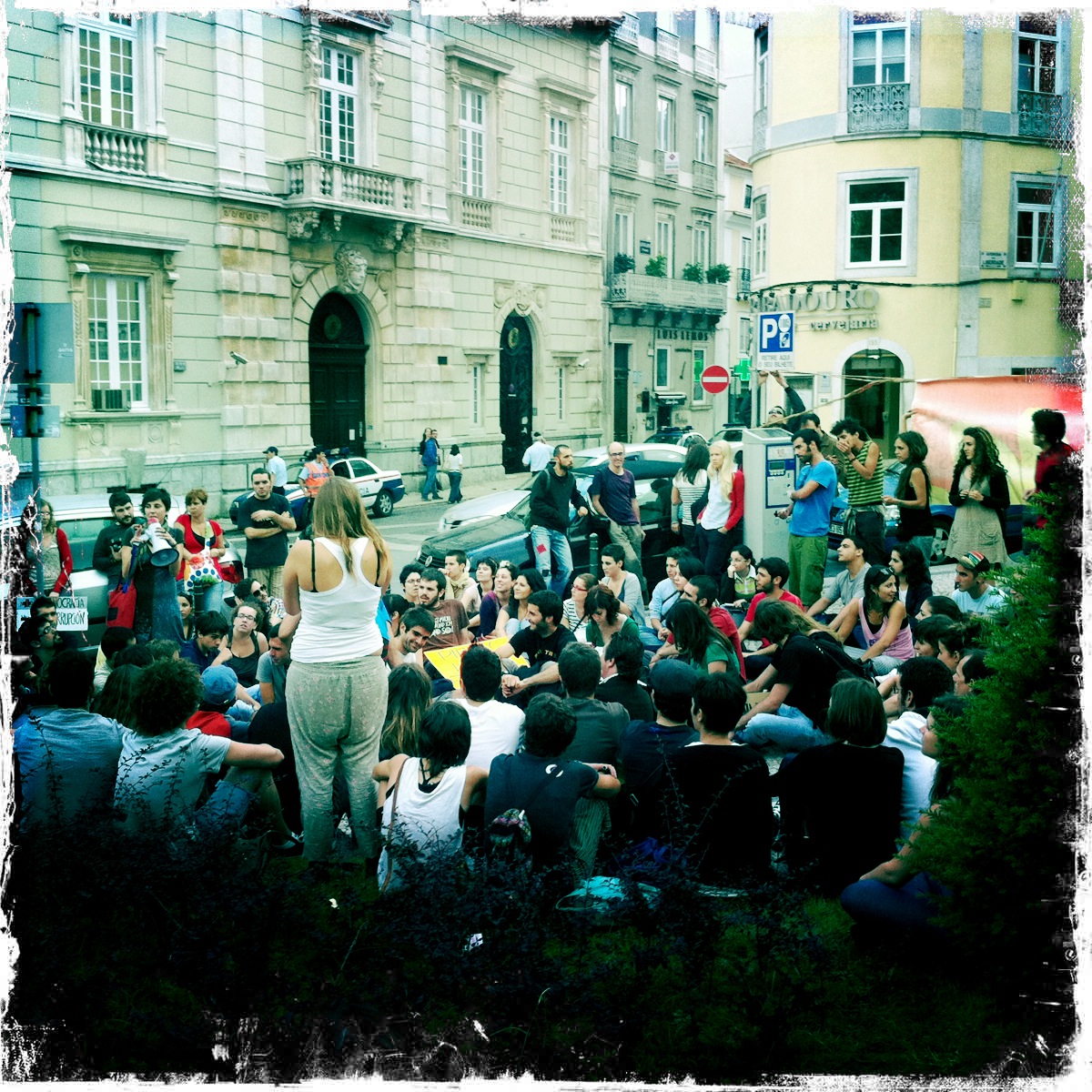 As pessoas dividiram-se em 3 assembleias mais pequenas para decidirem o que devem fazer nas próximas horas. Dentro de minutos far se a um debate com todos/as os/as participantes para decidirem a accao.
