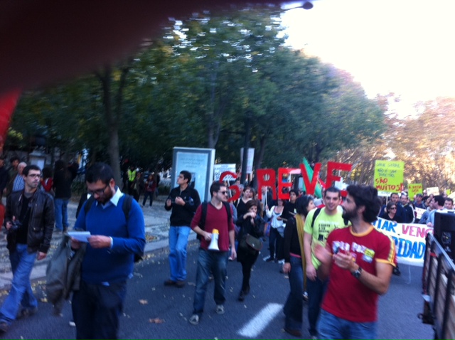 Os Precários Inflexíveis encontram-se neste momento a descer a Avenida da Liberdade, prestes a chegar ao Rossio, com um mar de gente vinda de vários pontos do país e que se decidiu juntar ao Movimento 15 de Outubro – os “Indignados”-, para se manifestarem contra a austeridade.