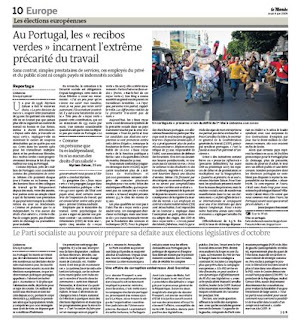 Somos notícia no Mundo pelas piores razões. A precariedade em Portugal é tão grave que quando um jornalista do Le Monde decide fazer um retrato do país a propósito das eleições europeias de Domingo escolhe este tema para nos caracterizar.