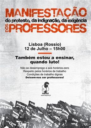 Para esta quinta-feira, 12 de julho, esta marcada uma manifestação nacional de professores e professoras para recusar o despedimento previsto de quase 30 mil professores contratados, para além de milhares de “horários-zero”, ou seja, horários que prevêem zero horas de aulas de professores do quadro.Esta manifestação foi convocada pela fenprof e Mário Nogueira, secretário geral da organização, disse que “a luta dos professores à dos médicos e, juntos, defenderemos dois pilares fundamentais da nossa Democracia e do Estado Social: a Escola Pública e o Serviço Nacional de Saúde”, visto que no dia anterior haverá uma manifestação de médicos e médicas para marcar a greve de 48 horas.