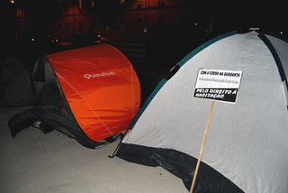 O movimento “Com a corda na garganta“, acampou ontem em frente ao Ministério das Finanças. Um protesto para exigir o direito à habitação, num momento em que muita gente tem dificuldades em continuar a pagar a sua renda.