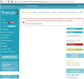 No portal das Finanças, responsável pela emissão dos recibos verdes, a partir de 1 Julho obrigatoriamente feitos electronicamente, tem estado hoje em baixo a possibilidade de emitir recibos verdes.