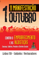 É já no próximo sábado, dia 1 de Outubro. A grande manifestação organizada pela CGTP “contra o empobrecimento e as injustiças” convoca o movimento sindical e o conjunto da população, nas cidades de Lisboa e Porto. Esta mobilização será a primeira grande demonstração popular contra a austeridade nesta agressiva era do acordo da troika e da nova maioria governamental que todos os dias anuncia sacrifícios apenas para os mais fracos. Apelamos à participação de todas as pessoas. Os Precários Inflexíveis estarão presentes na manifestação de Lisboa: o ponto de encontro está marcado para as 15h no cruzamento da Avenida da República (lado Oeste) com a Avenida Duque d’Ávila, para daí integrar a manifestação.